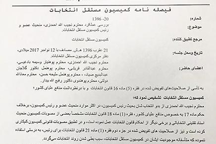 اعضای کمیسیون مستقل انتخابات می گوید؛ رئیس باید برکنار شود+سند