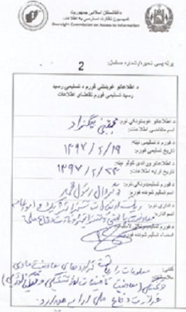 برگهی رسمی رسید تقاضای اطلاعات پیک بهتاریخ ۱۹ ثور ارائه شده؛ اما بانظرداشت سه روز معیاد قانونی، تااکنون معلومات تقاضاشده از سوی مسوولان وزارت دفاع ملی، ارائه نهشدهاست. دگروال رسولمحمد مسوول بخش دسترسی بهاطلاعات دفتر مطبوعاتی وزارت دفاع ملی در آخرین تماس تلفونی بهخبرنگار پیک گفت: