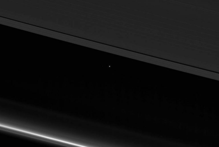 این نقطه نورانی بسیار کوچک از فاصله ۱.۴ میلیارد کیلومتری برداشته شده است. جالب اینکه اگر تصویر را به مقدار زیاد بزرگ کنید متوجه قمر زمین یعنی ماه هم خواهید شد