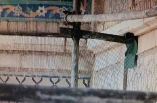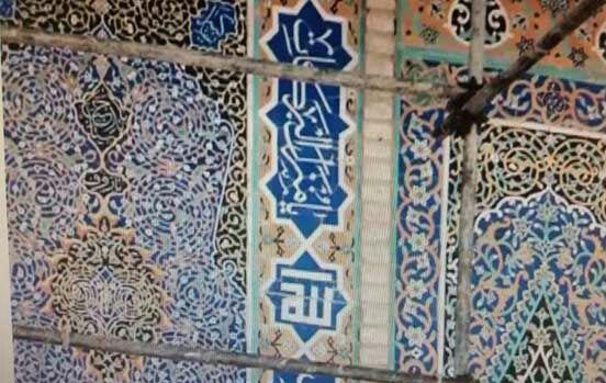 برای تهیه محل سخنرانی میخ های بزرگی به دیوار کاشی کاری مسجد جامع کوبیده شده است که آثار صدمه آن به خوبی معلوم می شود.