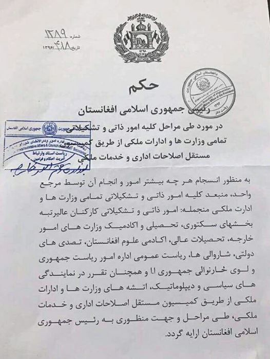 به عقیده بسیاری از کارشناسان، کمیسیون مستقل اصلاحات اداری برای محدود کردن قدرت داکتر عبدالله به وجود آمد. حکمی که به تازگی در شبکه های اجتماعی دست به دست می شود موضوع جدیدی نیست فقط عملاً نه رسماً به صلاحیت های دکتر عبدالله نقطه پایان گذاشته شده است.