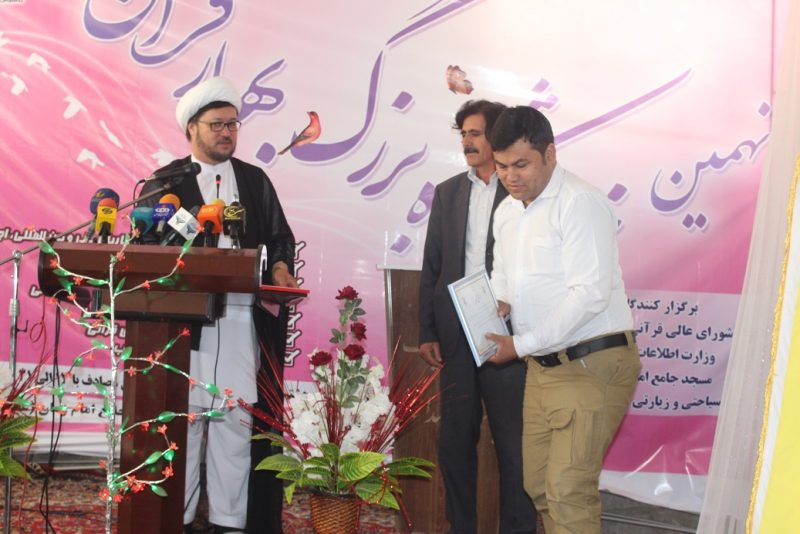 شورای عالی قرآن افغانستان در اخیر مراسم اختتامیه نمایشگاه بهار قرآن برای برخی از خبرنگاران و رسانه ها و “سید محمد رقیب فیاض” خبرنگار خبرگزاری رشد لوح تقدیر اهدا کرد.