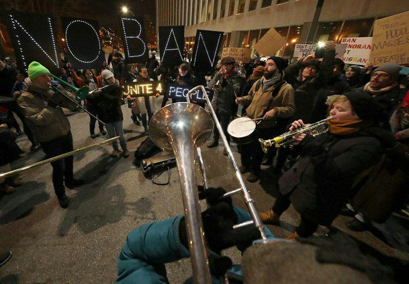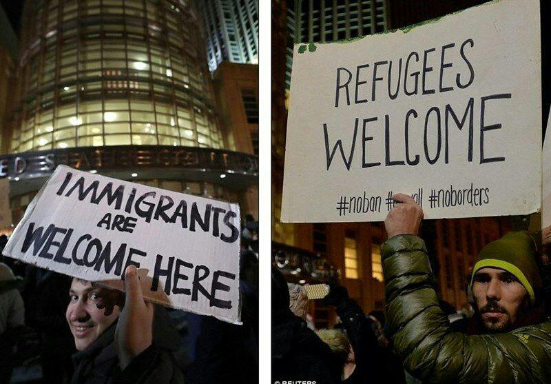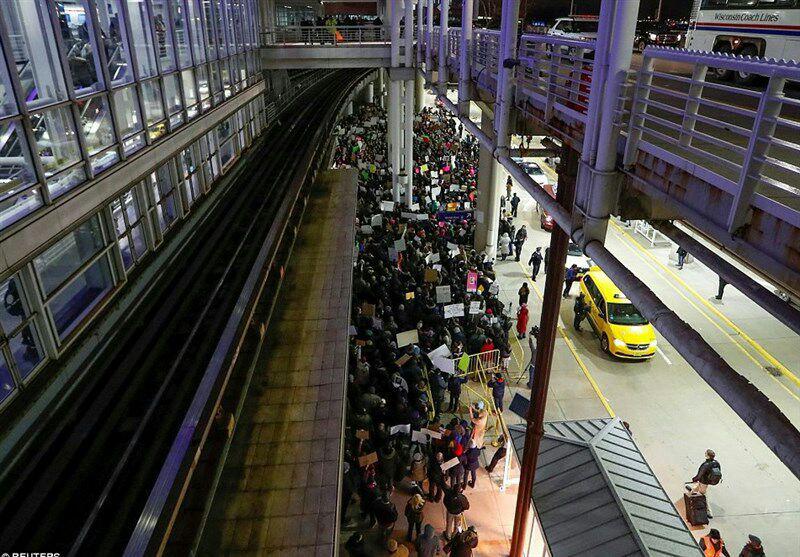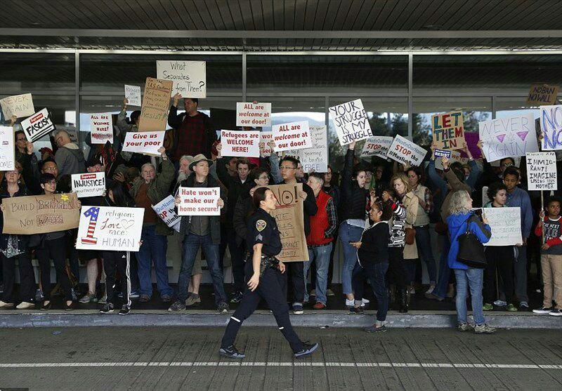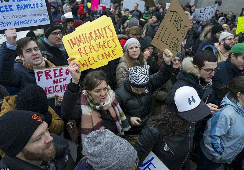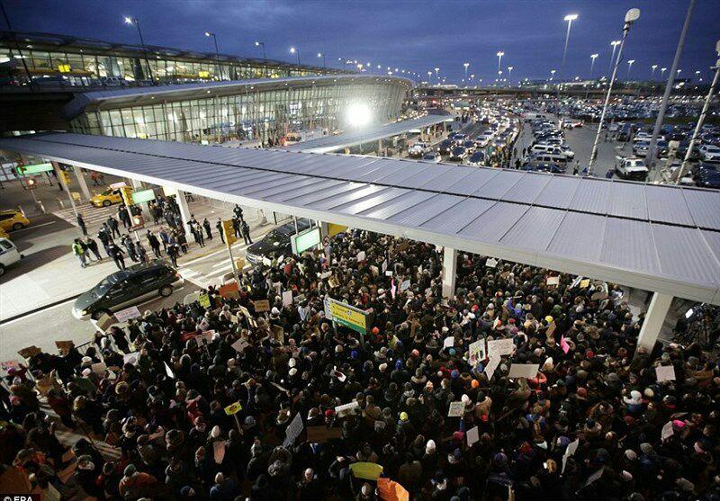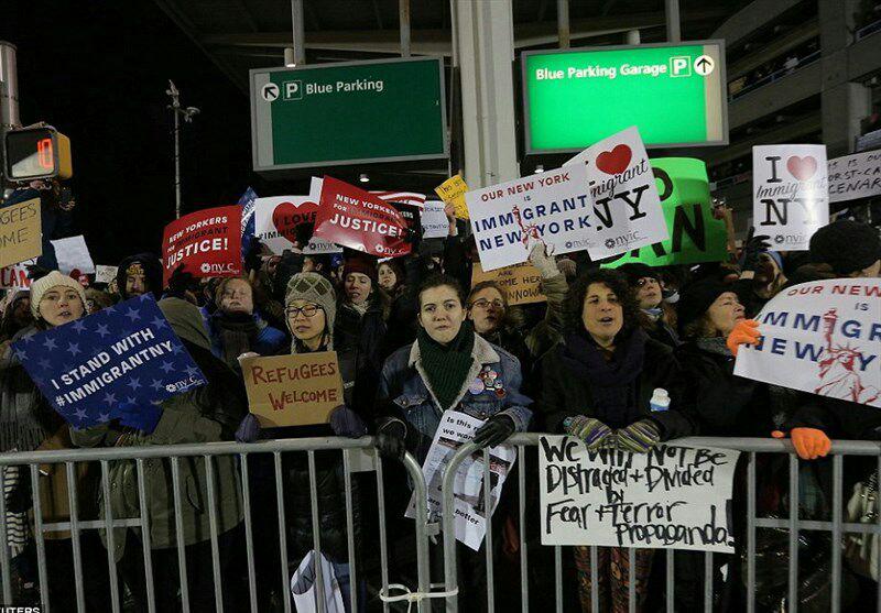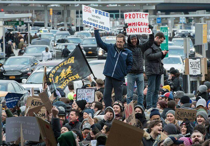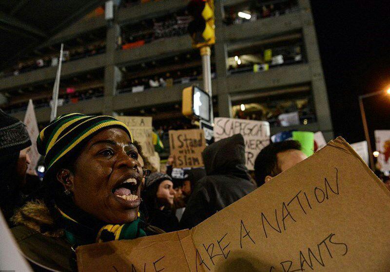 شهروندان آمریکایی در اعتراض به ممنوعیت ورود مهاجران به آمریکا در میدان هوایی های های مختلف این کشور دست به تظاهرات زدند.