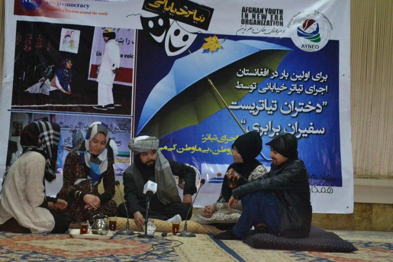 محمد آهنگران رئیس اجرایی موسسه جوانان افغان در عصر نوین گفت: دختران تیاتریست و سفیران برابری، یک تفکر است که جمعی از دختران هنرمند در آن حضور دارند.