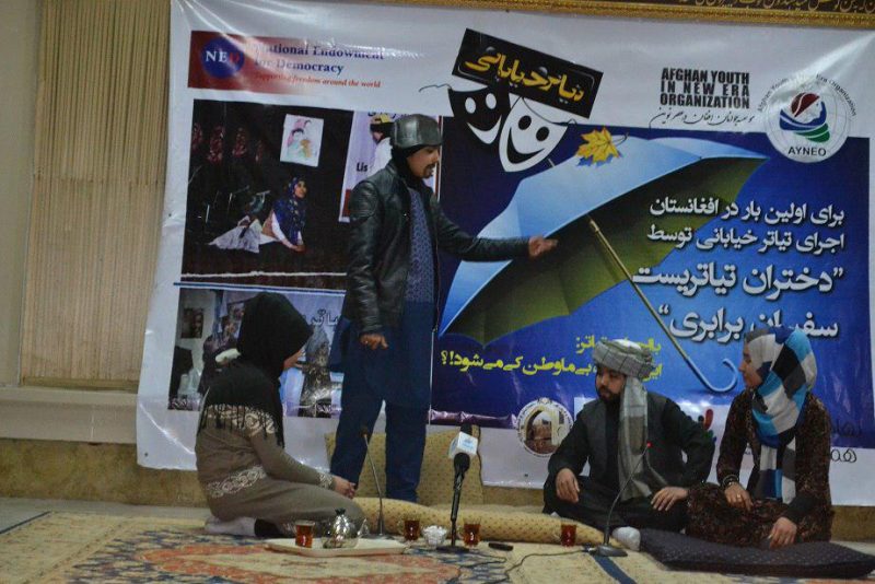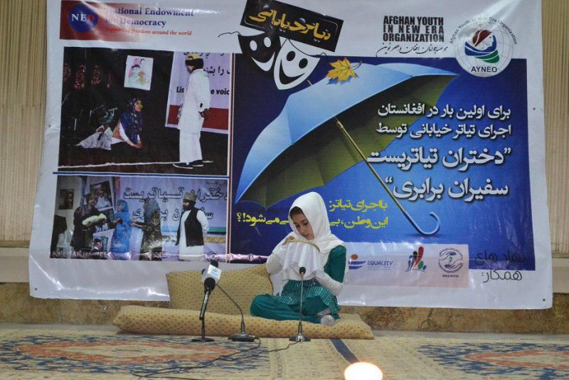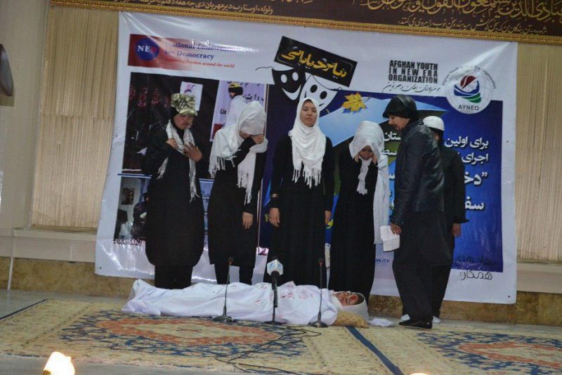 مسئولین نهاد فرهنگی موسوم به “موسسه جوانان افغان درعصر نوین” امروز یکشنبه با برگزاری تیاتری تحت نام “دختران تیاتریست سفیران برابری” در کابل می گویند: هنر آورنده صلح و برابری در کشور است.